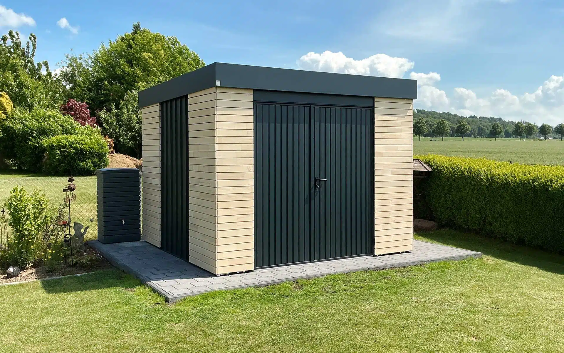 Unsere Metallgerätehäuser sind absolut modern, enorm langlebig und individuell anpassbar. So können Sie eine optionale Verkleidung aus Holzelementen anbringen oder die Farbe nach RAL wählen. Schaffen Sie mit Ihrem neuen Gerätehaus viel Platz für Fahrräder, Spielsachen, Gartengeräte und vielem mehr - oder nutzen Sie es als Gartenhaus für entspannte Stunden in Ihrem Garten.